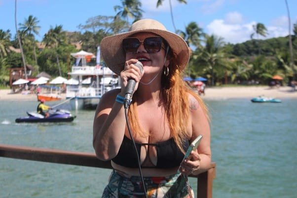 Na foto: Carol Camurugy aproveitando a viagem à Recife.