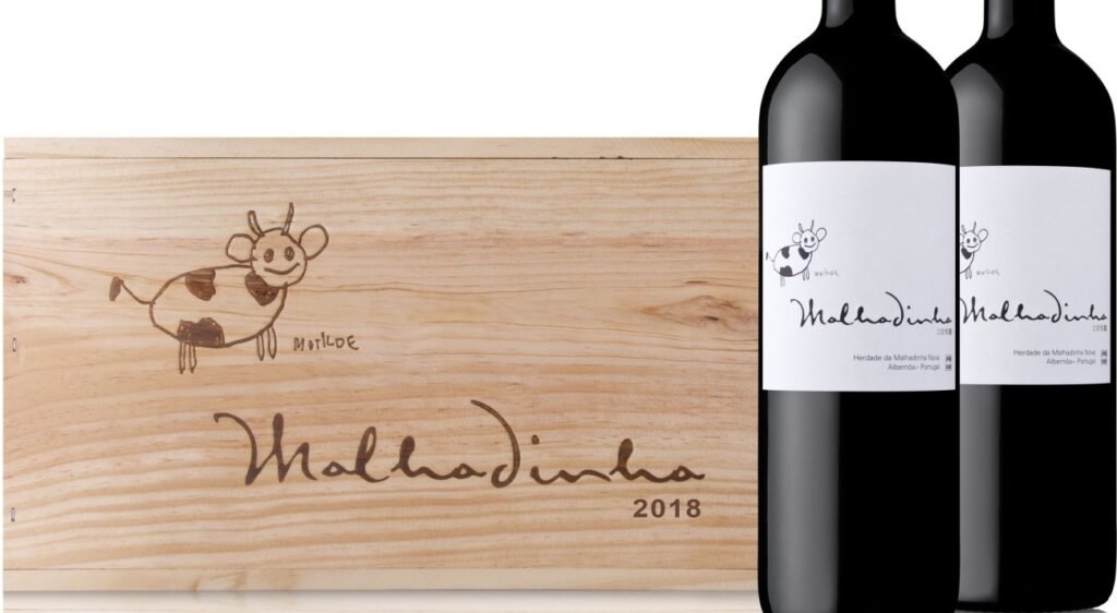 O rótulo do vinho, Malhadinha, é um desenho da Matilde, filha de um dos proprietários da vinícola, Herdade da Malhadinha Nova, da família Soares. Aliás, uma sacada inteligente dos proprietários em rotular alguns dos seus vinhos com desenhos da turma da nova geração e nominar alguns deles com os nomes dos seus filhos. A prática de usar a arte dos filhos nos rótulos é uma forma de a família expressar a ligação afetiva com o projeto e com a terra. Parabéns aos criativos e equipe da vinícola.