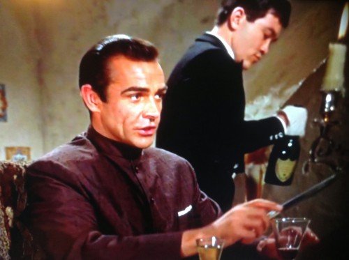 Na minha infância e adolescência assisti a todos os filmes de 007. Em todos os filmes havia uma cena em que o personagem James Bond, quando a mesma era ambientada em um restaurante, em um cassino ou mesmo no bar do hotel, ele sempre pedia ao maître um champanhe Dom Pérignon safra 1953, (observem o champanhe na mão do garçom).
