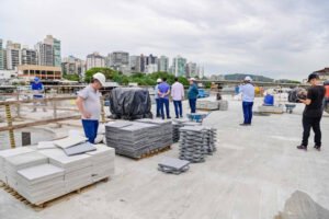 As obras de requalificação da orla do Canal de Camburi entraram em uma nova fase nesta terça-feira (4), com o início da aplicação do piso definitivo dos deques. As estruturas farão parte do projeto Vitória de Frente para o Mar, que vai transformar o canal em um moderno espaço de lazer, convivência e turismo, interligando os bairros Praia do Canto, Barro Vermelho, Santa Luíza e Pontal de Camburi.
